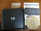 箱の中には本体である玄箱、セットアップディスク、台座、ネジ(3本)、解説書が入っていた。