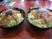 ご飯の上にキャベツと豚肉が乗った丼なんですけど、特徴はその量。